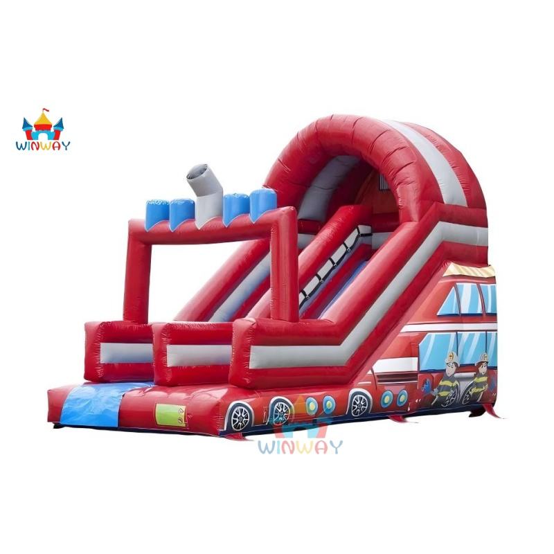 สไลเดอร์เป่าลมสำหรับเด็กเกรดเชิงพาณิชย์ รูปทรงรถดับเพลิง สำหรับสนามหลังบ้านและงานปาร์ตี้ กำลังลดราคา