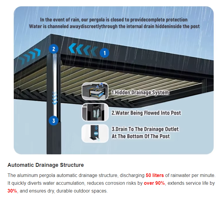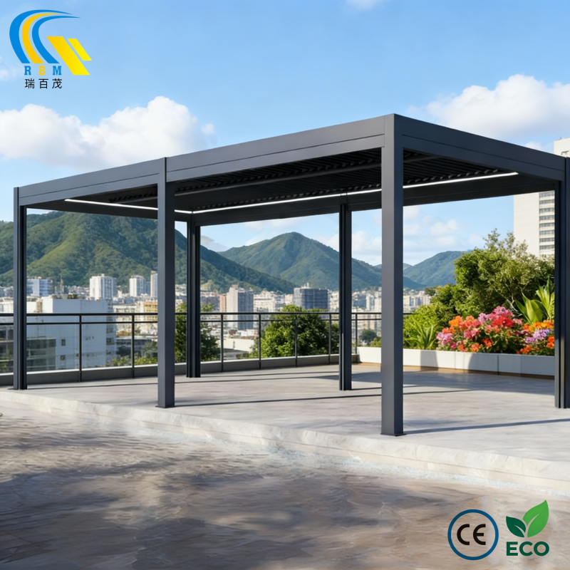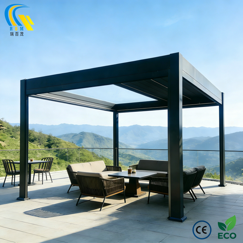 เพอร์โกลาระดับพาณิชย์สำหรับคาเฟ่ที่มีที่นั่งกลางแจ้ง ศาลาหลังคาพับเก็บได้สำหรับพื้นที่พักผ่อนของสนามกอล์ฟ