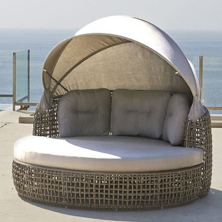 เก้าอี้อาบแดดหวายเกรดเชิงพาณิชย์ดีไซน์ทันสมัยหลังคาปรับได้กันน้ำสำหรับใช้กลางแจ้งสำหรับพื้นที่สระว่ายน้ำคลับโรงแรม
