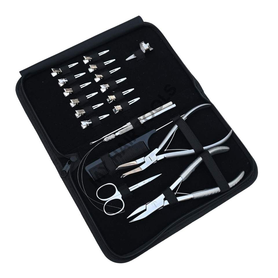 ชุดคีมต่อผมมืออาชีพ พร้อมเครื่องมือเกี่ยว ห่วง และหวีสำหรับติดคลิป