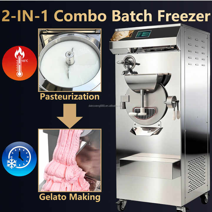 เครื่องทำไอศกรีมเชิงพาณิชย์แบบแบทช์ฟรีซเซอร์ | เครื่องทำเจลาโต้จากโรงงานพร้อมเครื่องพาสเจอร์ไรซ์ 15 ลิตร และเครื่องทำไอศกรีม 220 โวลต์ สำหรับขาย