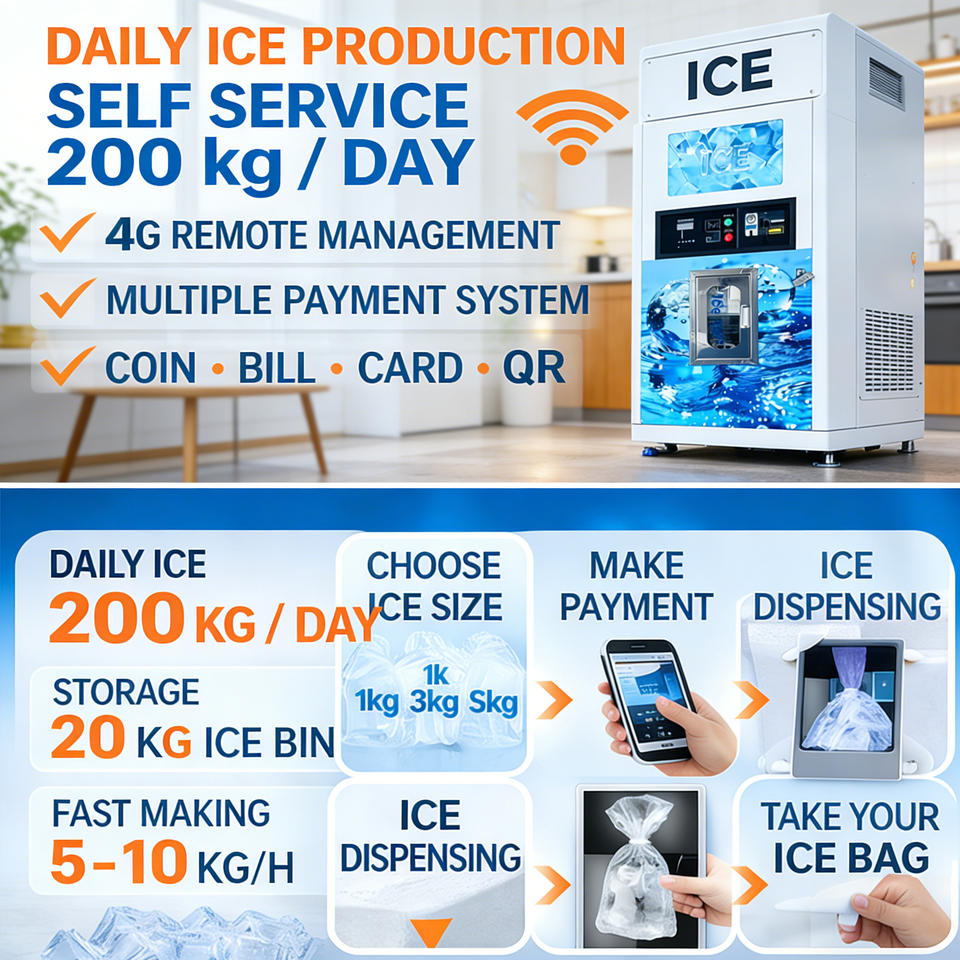 เครื่องทำน้ำแข็งอัตโนมัติแบบหยอดเหรียญพร้อมระบบจัดการผ่านคลาวด์อัจฉริยะ