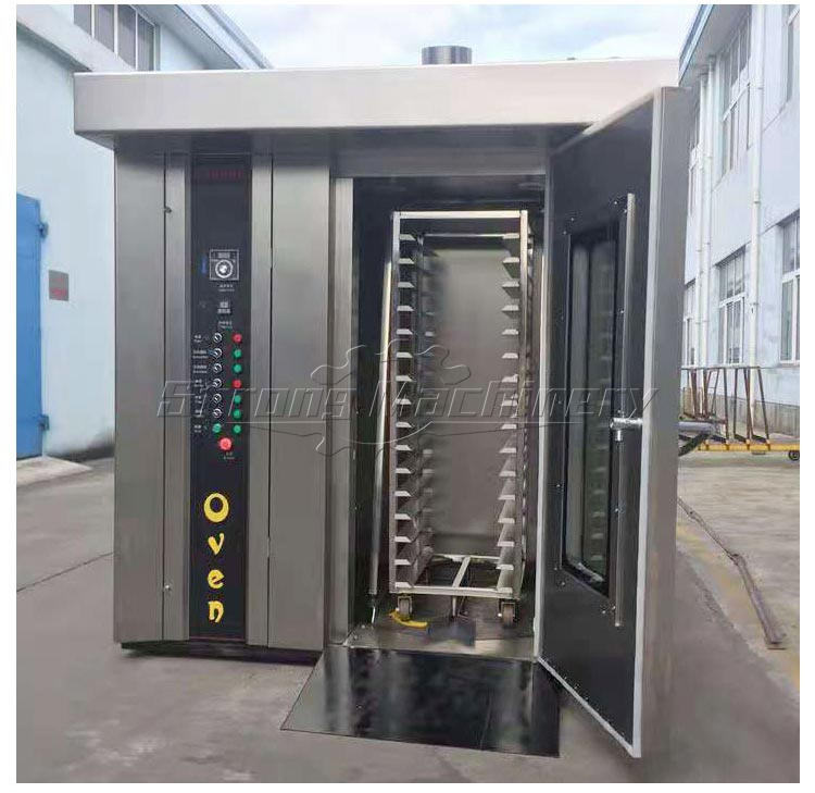 เตาอบไฟฟ้าแบบหมุนพร้อมรถเข็นอุปกรณ์เบเกอรี่32 64ถาดสำหรับอุตสาหกรรมเชิงพาณิชย์