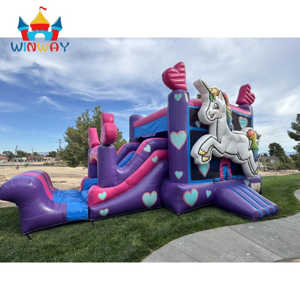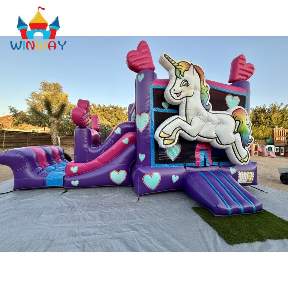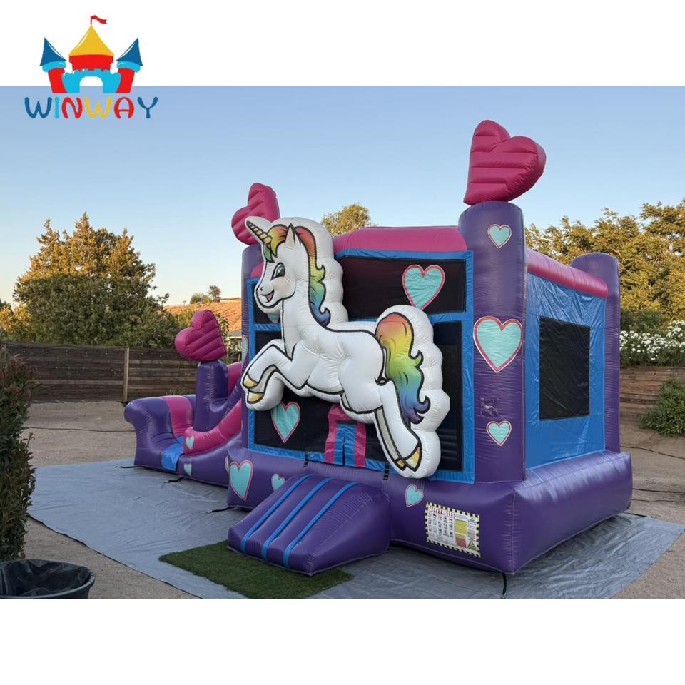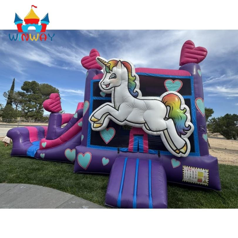 Winway บ้านเด้งยูนิคอร์นพีวีซีเป่าลมได้พร้อมสไลด์เกรดเชิงพาณิชย์สำหรับเด็กปราสาทกระโดดสำหรับงานปาร์ตี้กลางแจ้ง