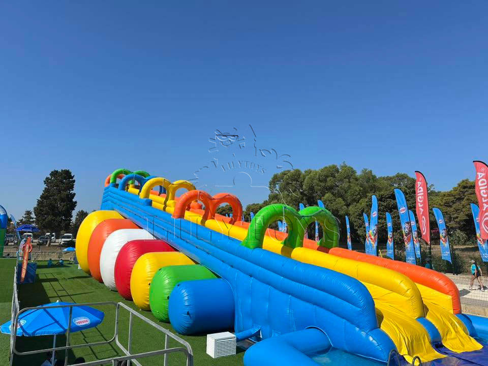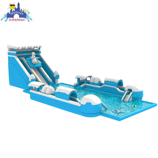 สวนน้ำเป่าลมพร้อมฝาสไลด์สวนน้ำเป่าลมพร้อมสระว่ายน้ำบนพื้นดินสำหรับขายในเชิงพาณิชย์