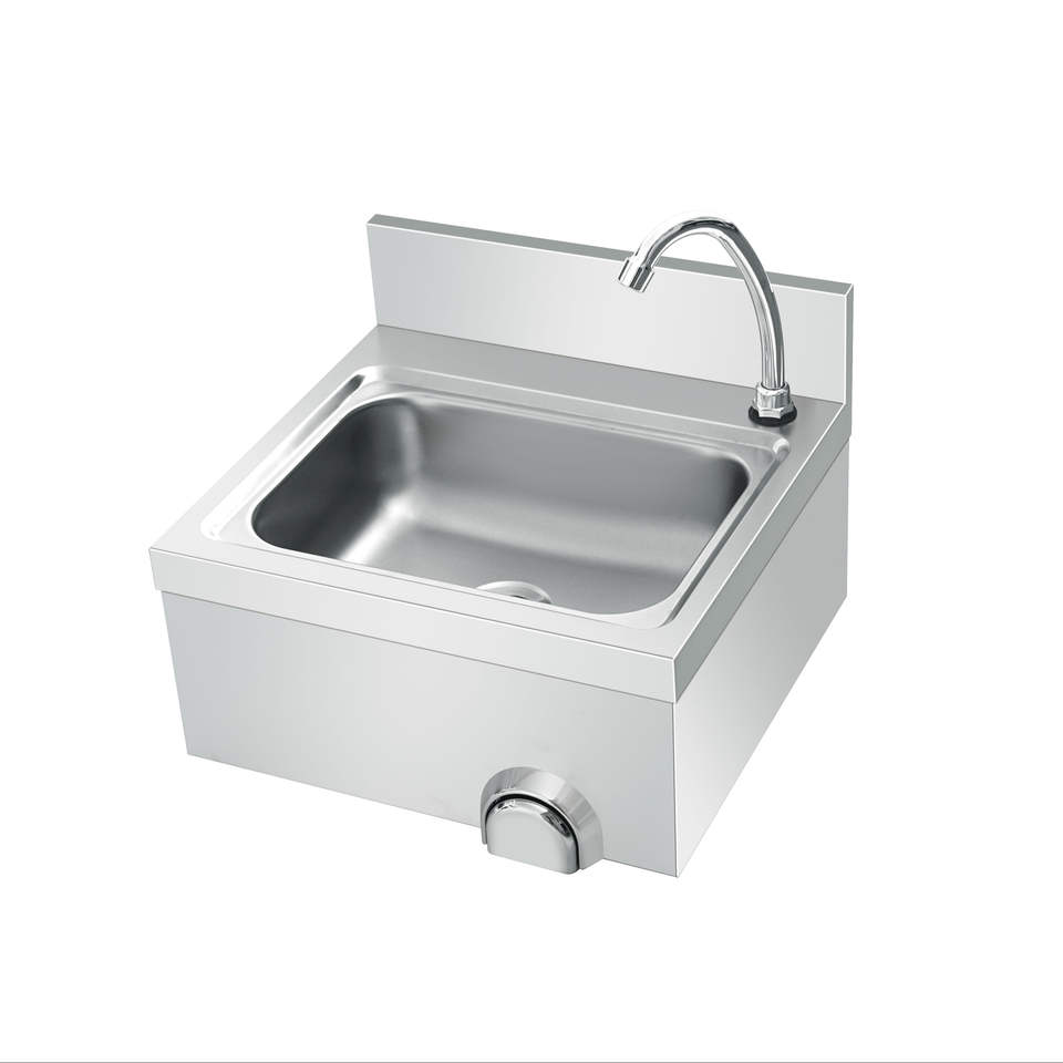 อ่างล้างมือแบบติดผนังสำหรับครัวเชิงพาณิชย์ ชามเดี่ยว ควบคุมด้วยเข่า ทำจากสแตนเลส ดีไซน์ทันสมัย
