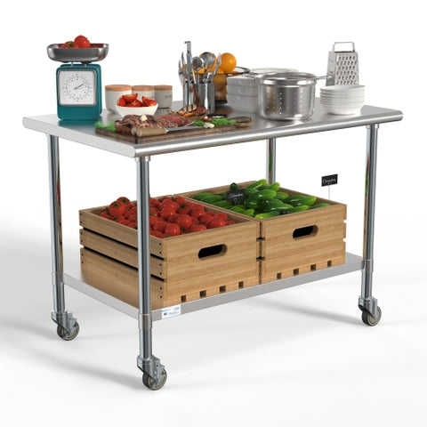 Commercial Kitchen 30 X 48 18-Gauge 304 Stainless Steel Work Table with Casters NSF Certified CT3048-18C