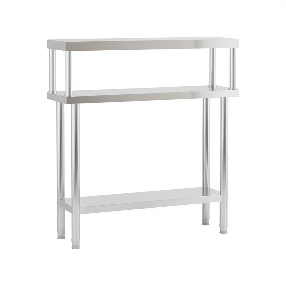 โต๊ะทำงานครัวเชิงพาณิชย์ 43.3x11.8x47.2 ซม. สแตนเลสสตีล พร้อมชั้นวางของด้านบน ผิวขัดเงา แบบตั้งพื้น