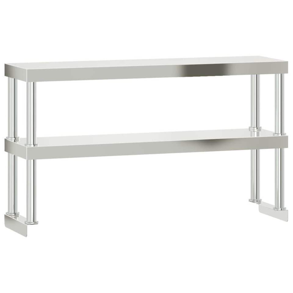 โต๊ะทำงานครัวเชิงพาณิชย์พร้อมชั้นวางของด้านบน ขนาด 43.3x21.7x59.1 นิ้ว ผลิตจากสแตนเลส