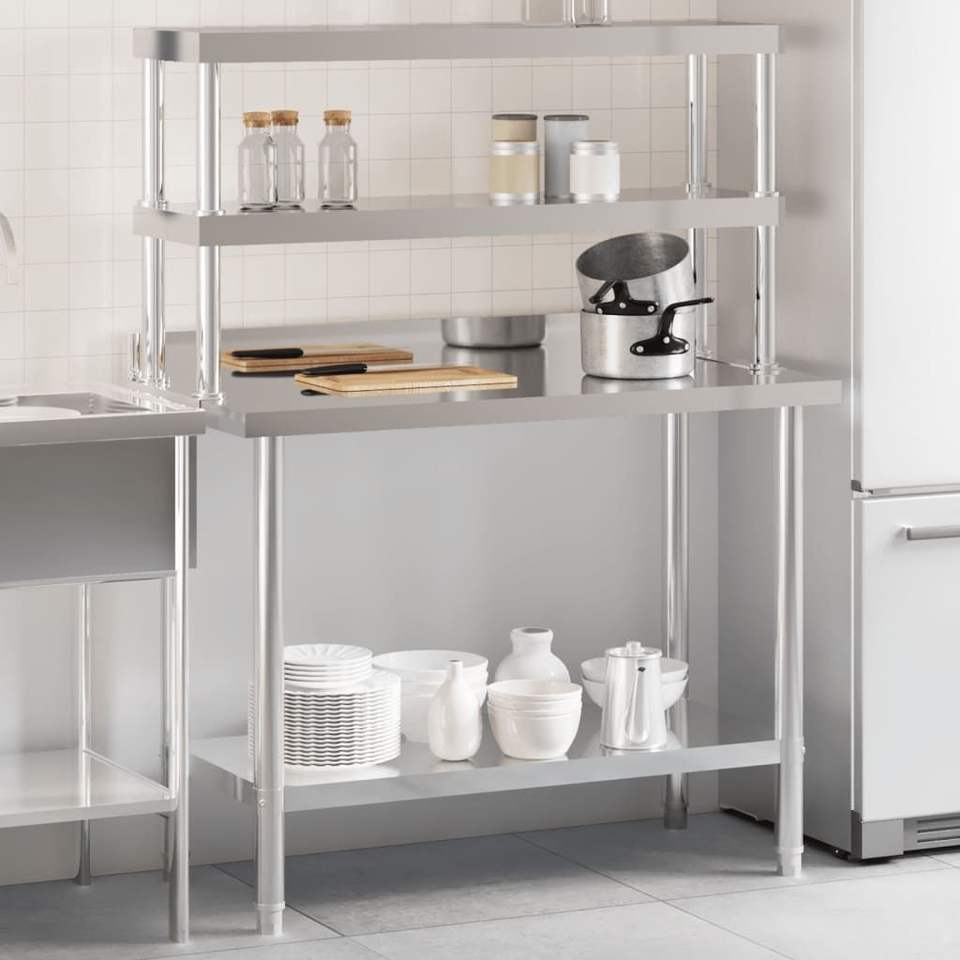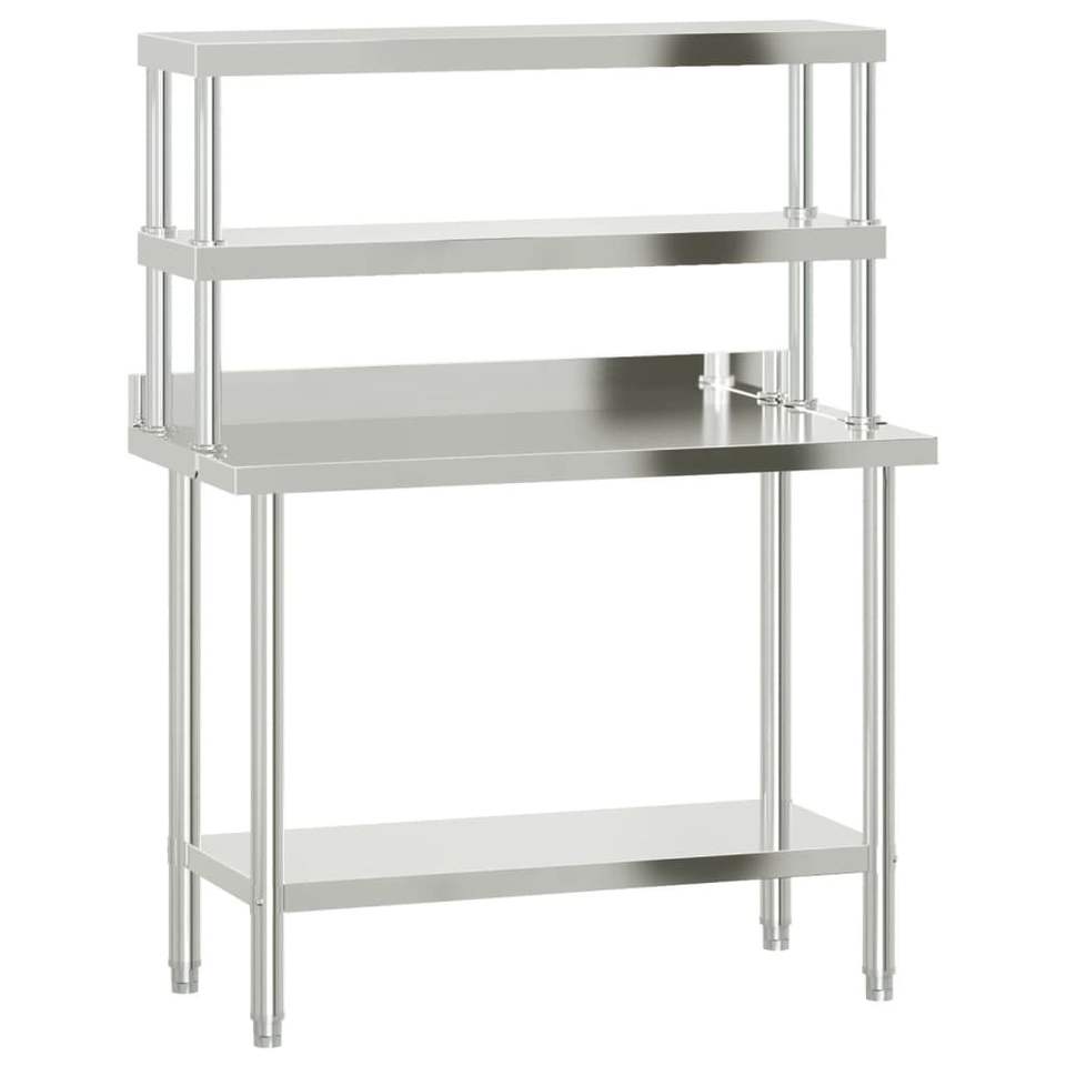 โต๊ะทำงานครัวเชิงพาณิชย์พร้อมชั้นวางของด้านบน ขนาด 43.3x21.7x59.1 นิ้ว ผลิตจากสแตนเลส