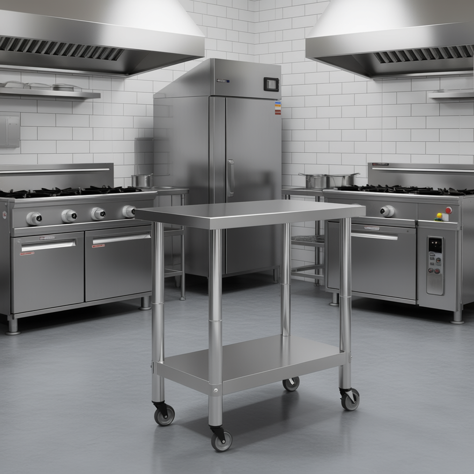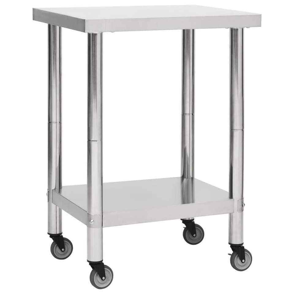 โต๊ะทำงานครัวเชิงพาณิชย์ 23.6x11.8x33.5 ซม. สแตนเลส พร้อมล้อ ขาปรับระดับความสูงได้ ผิวขัดเงา