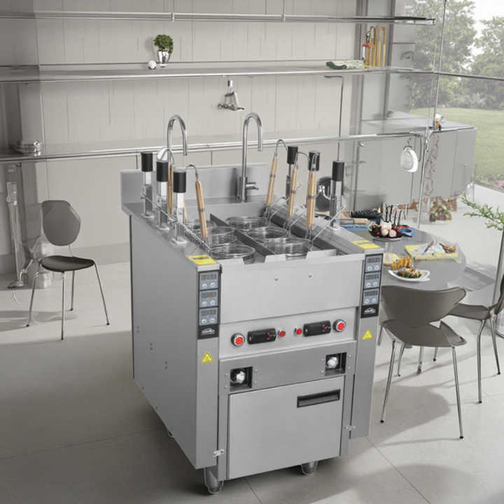 หม้อหุงบะหมี่เกาหลีเชิงพาณิชย์ หม้อต้มอุตสาหกรรมพร้อมมอเตอร์ ความจุ 50 กก./ชม. กำลังไฟ 6 กิโลวัตต์
