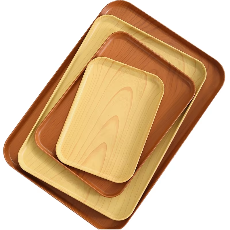 แผ่นพีพีเกรดอาหารสำหรับคาเฟ่ของหวานชายามบ่ายดีไซน์ลายเนื้อไม้ทรงสี่เหลี่ยมผืนผ้าขนาดใหญ่เป็นมิตรต่อสิ่งแวดล้อมทันสมัย