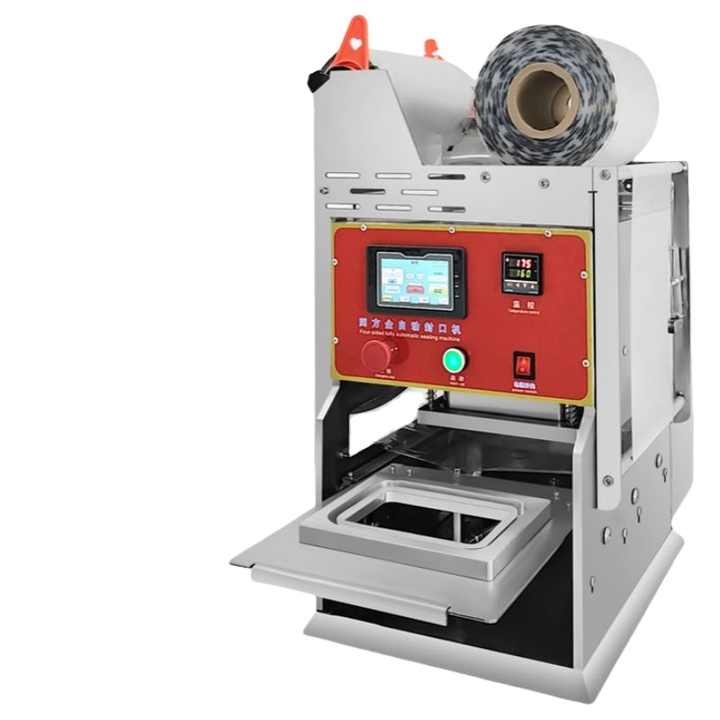 เครื่องซีลถาดอาหารเชิงพาณิชย์ เครื่องซีลถาดอาหารแบบตั้งโต๊ะ เครื่องซีลถาดพลาสติกสำหรับอาหารฟาสต์ฟู้ด