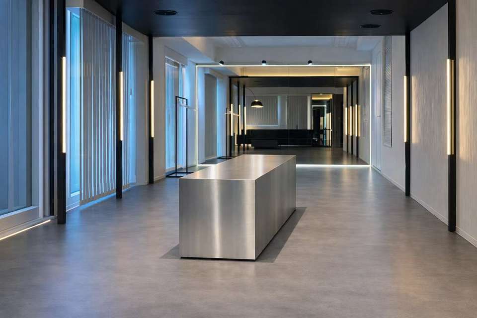 โต๊ะต้อนรับสแตนเลสเชื่อมแบบกระจกเชิงพาณิชย์ 304 สำหรับเฟอร์นิเจอร์สำนักงาน โต๊ะหน้า