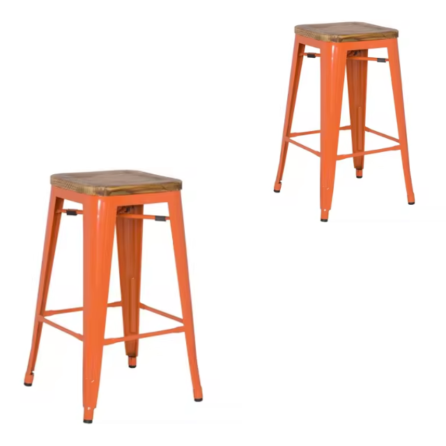 เก้าอี้บาร์สูงขาสูงสำหรับเคาน์เตอร์เชิงพาณิชย์ทันสมัยพร้อมกรอบโลหะฐานไม้เป็นมิตรกับสิ่งแวดล้อมและทนทานสำหรับการรับประทานอาหารกลางแจ้ง