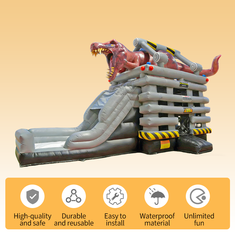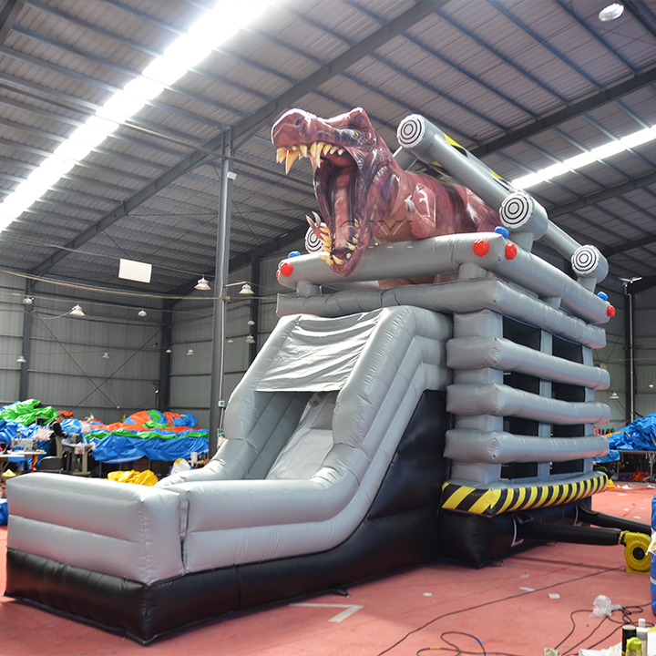 บ้านลมเป่าลมไดโนเสาร์พีวีซีสำหรับใช้งานกลางแจ้งแบบหนาพิเศษ พร้อมสไลเดอร์สำหรับเด็กและวัยรุ่น รับประกัน 3 ปี