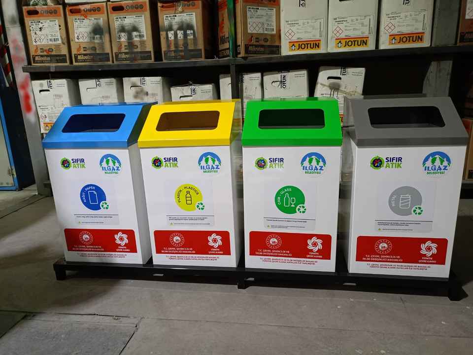 ระบบเก็บขยะ4ชิ้นถังสี่เหลี่ยมแบบเปิดด้านบนสำหรับกลางแจ้งใช้ในเชิงพาณิชย์