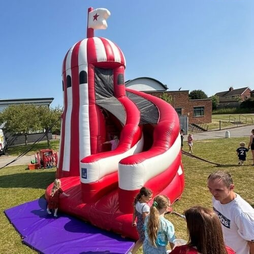 สไลด์ลมแบบเกลียวแผ่นพีวีซีเป่าลมสำหรับปีนเขาในเชิงพาณิชย์แห้ง
