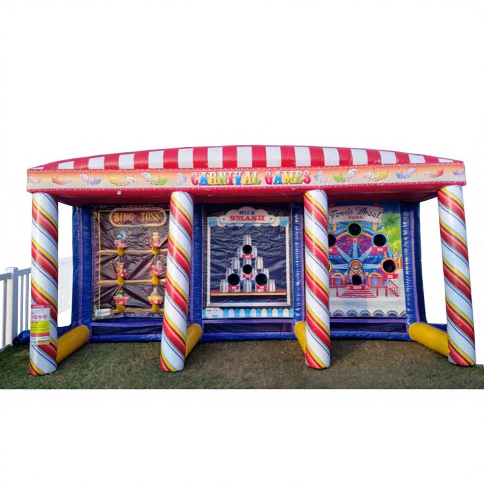 บูธเกมส์เป่าลมพีวีซีเชิงพาณิชย์สำหรับงานรื่นเริง สถานีเกมส์อินเทอร์แอคทีฟแบบมัลติเกมส์ สำหรับใช้งานกลางแจ้ง/ในร่ม เหมาะสำหรับงานปาร์ตี้และกิจกรรมต่างๆ