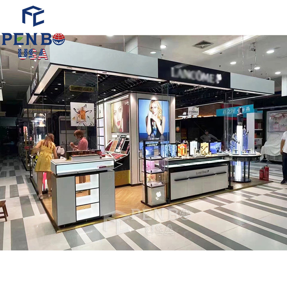เคาน์เตอร์น้ำหอมเชิงพาณิชย์แบบกำหนดเองสำหรับห้างสรรพสินค้า ร้านขายเครื่องประดับและน้ำหอมขนาดเล็ก ออกแบบตกแต่งภายในห้างสรรพสินค้าพร้อมหลังคา