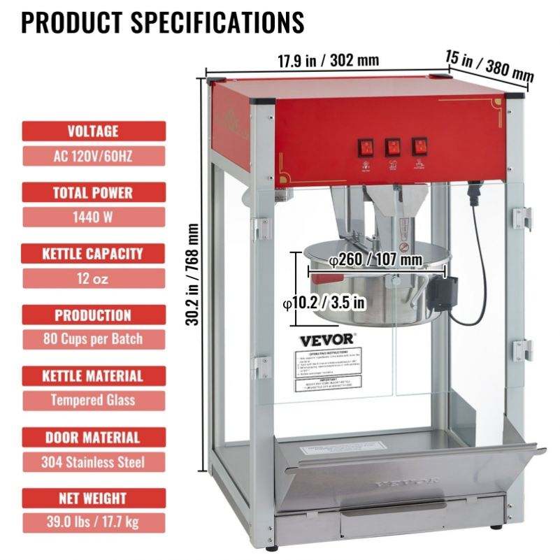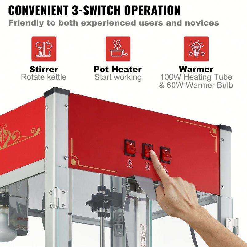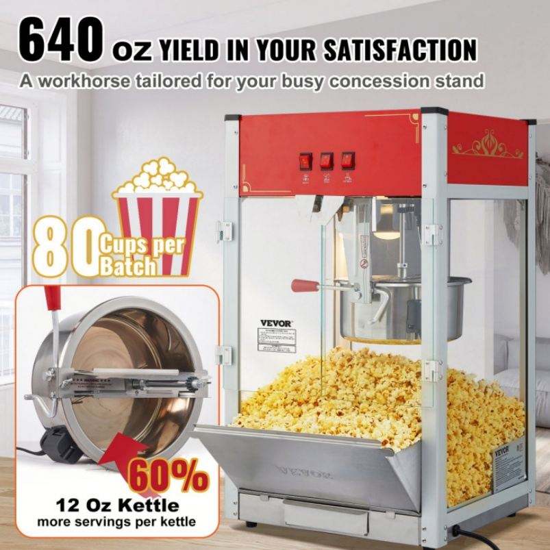 เครื่องทำป๊อปคอร์นบนเคาน์เตอร์12ออนซ์เครื่องทำป๊อปคอร์น1440W 80ถ้วย