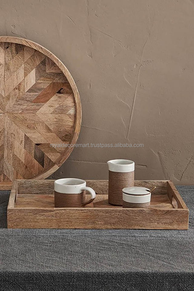 ถาดเสิร์ฟไม้มะม่วงเชิงพาณิชย์ถาดอาหารเช้าดีไซน์ใหม่
