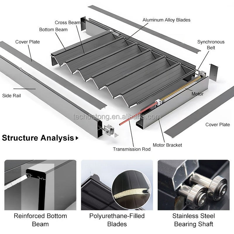 ม่านม้วนอลูมิเนียมสำหรับหลังคาเชิงพาณิชย์ ระบบมอเตอร์ พร้อมรีโมทคอนโทรล ขนาด 8 เมตร สำหรับห้องอาบแดดกลางแจ้งและกันสาด