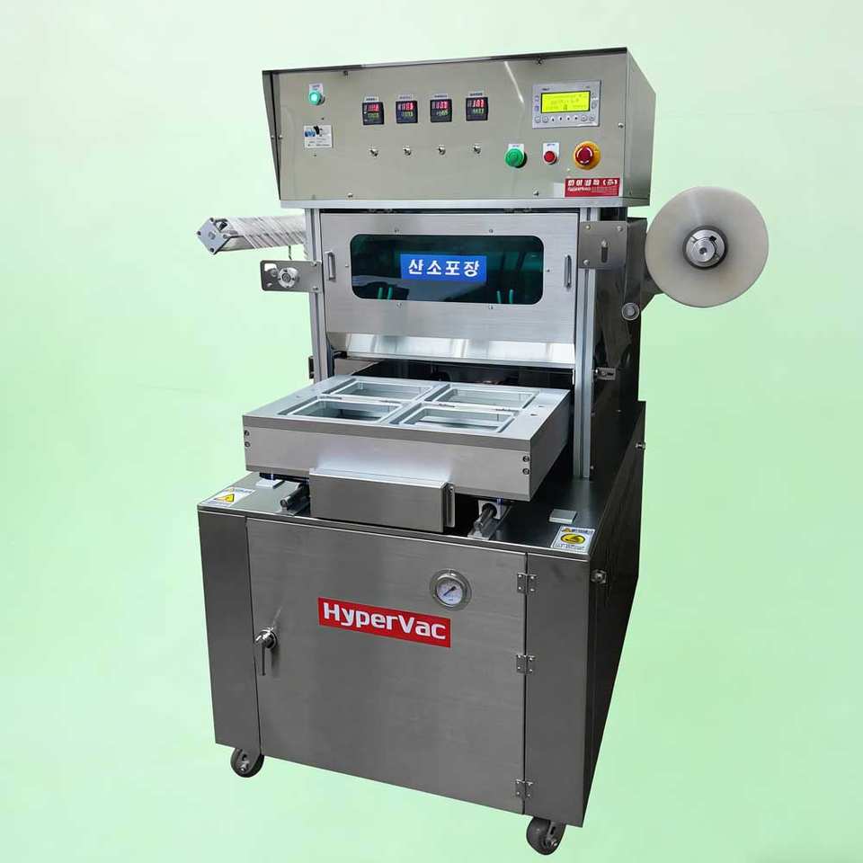 เครื่องซีลแบบกึ่งอัตโนมัติสำหรับบรรจุภัณฑ์อาหารสด ถาดเนื้อสัตว์ พร้อมระบบเติมแก๊ส MAP วัสดุสแตนเลส 304 รับน้ำหนักได้ 150 กก.