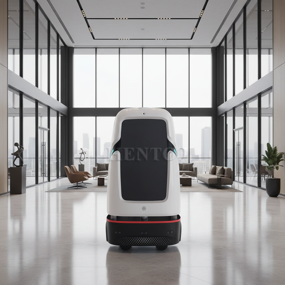 หุ่นยนต์บริการเชิงพาณิชย์ Janz R1 หน้าจอโฆษณา 23.6 นิ้ว ระบบเรียกอัตโนมัติสำหรับลิฟต์ รองรับการโต้ตอบหลายโหมด มาตรฐาน IP67 พร้อมฐานเคลื่อนที่
