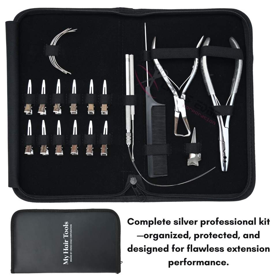 ชุดเครื่องมือต่อผมสีเงินเชิงพาณิชย์พร้อมสแตนเลส