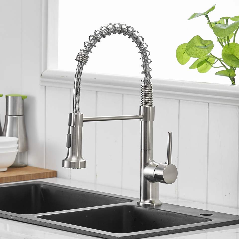 ก๊อกน้ำห้องครัวแบบก้านโยกเดี่ยวพร้อมหัวฉีดแบบดึงลงสำหรับใช้กับอ่างล้างจาน