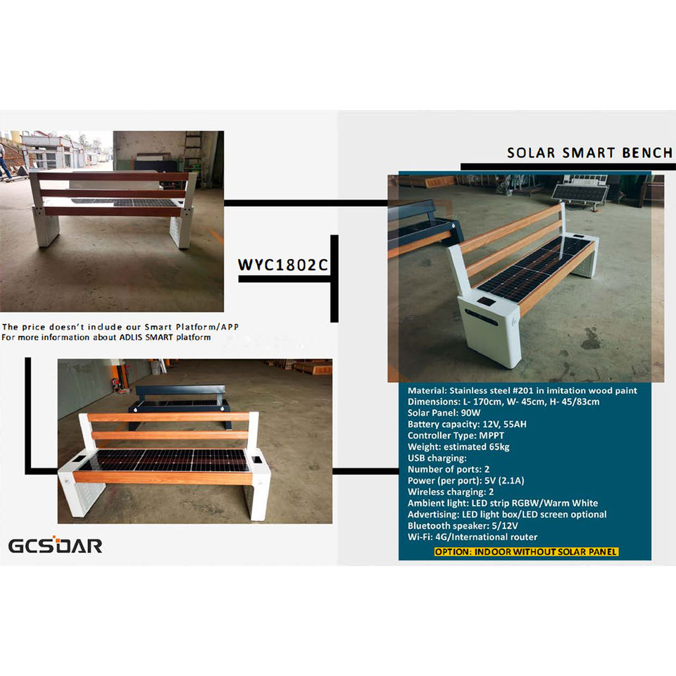ม้านั่งอัจฉริยะพลังงานแสงอาทิตย์เชิงพาณิชย์พร้อมหน้าจอโฆษณาดิจิตอลชาร์จ USB บริการ WIFI และการรวบรวมข้อมูล