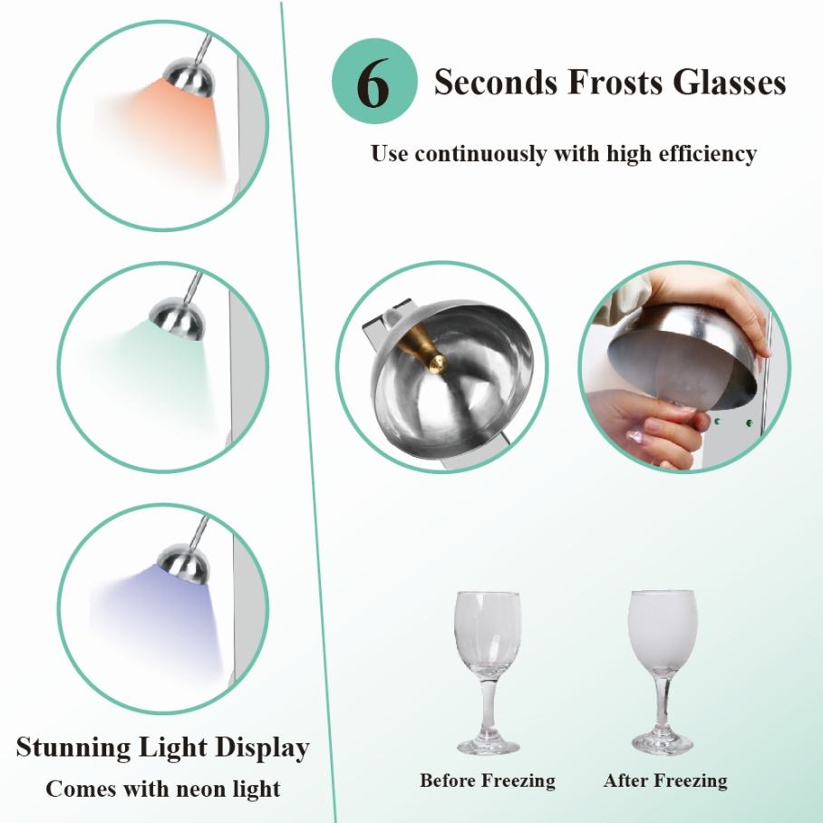เครื่องทำน้ำแข็งสำหรับแก้วเบียร์แบบตั้งโต๊ะ สแตนเลสเกรดเชิงพาณิชย์ ใช้ก๊าซคาร์บอนไดออกไซด์ แช่แข็งแก้วได้รวดเร็ว
