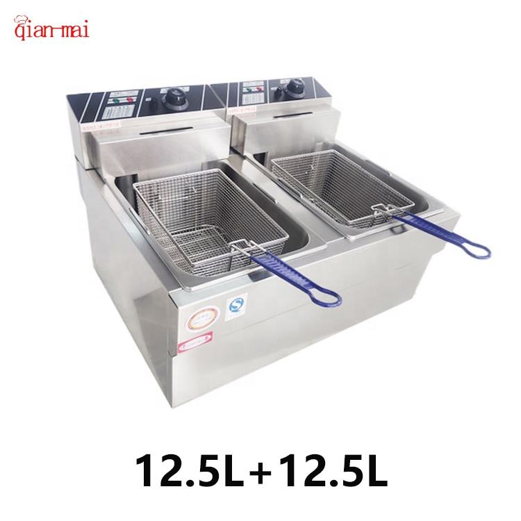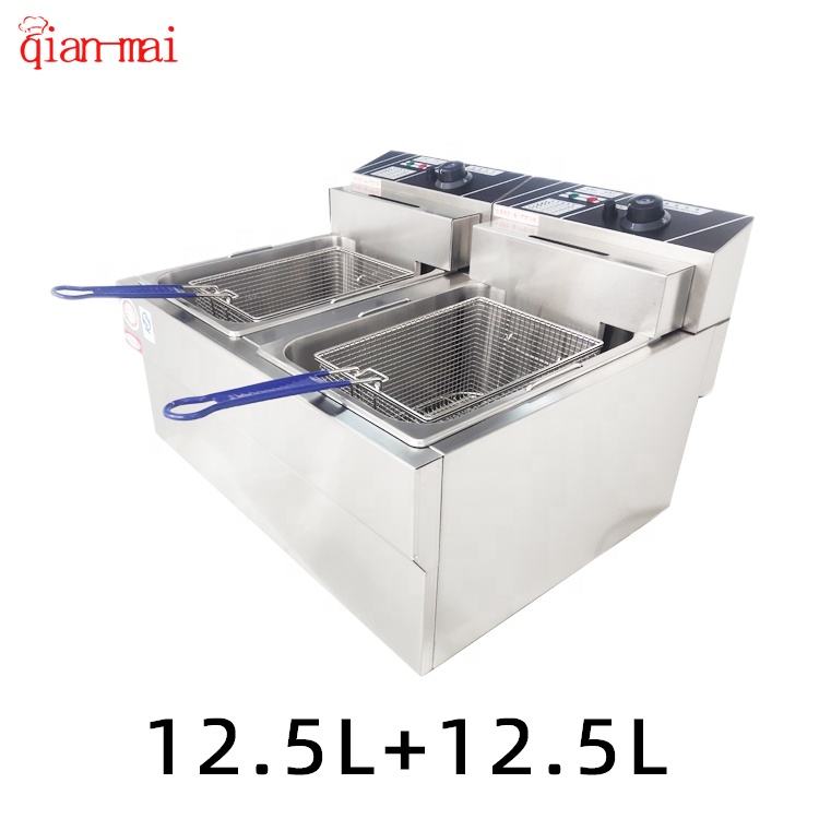 เครื่องทอดแบบไฟฟ้าทำจากสเตนเลสใช้ในเชิงพาณิชย์เครื่องทอดไก่และมันฝรั่งทอดประสิทธิภาพสูงสภาพใหม่