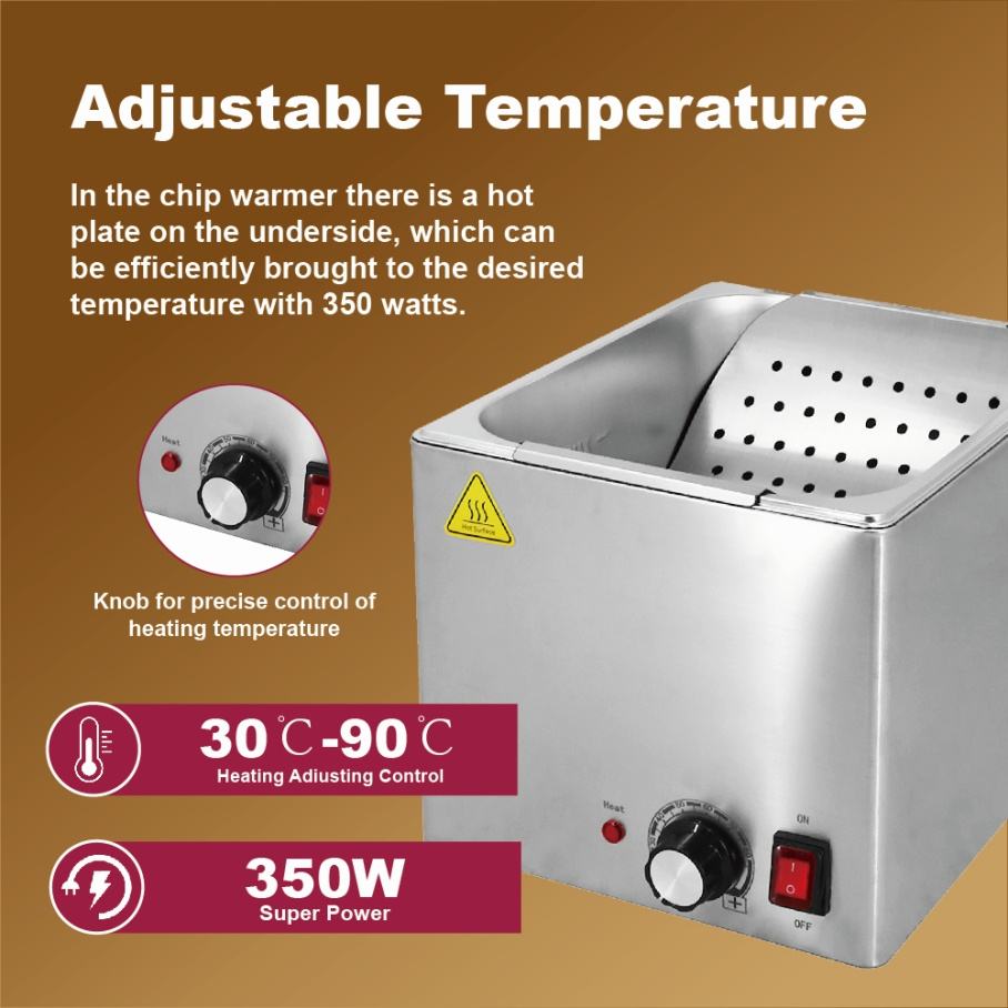 สถานีอุ่นเฟรนช์ฟรายส์สแตนเลสเชิงพาณิชย์ พร้อมที่วางอุ่นแบบปรับอุณหภูมิได้และประหยัดพลังงาน