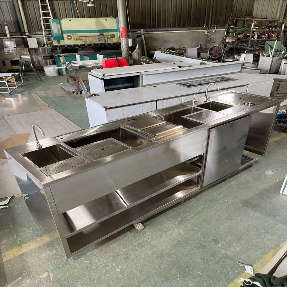 สถานีผสมสแตนเลสเกรด 304 สำหรับเชิงพาณิชย์ พร้อมอ่างล้างมือและที่เก็บของ กันน้ำ กันสนิม สำหรับร้านอาหารและคาเฟ่