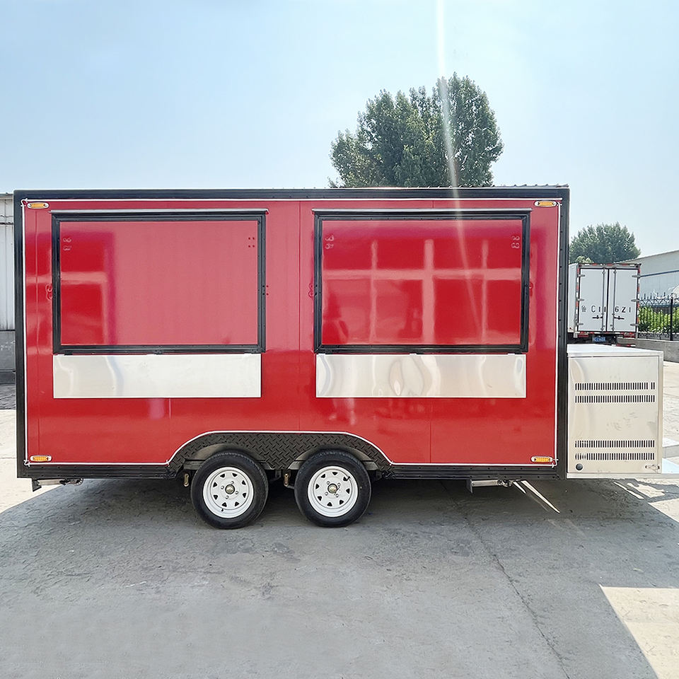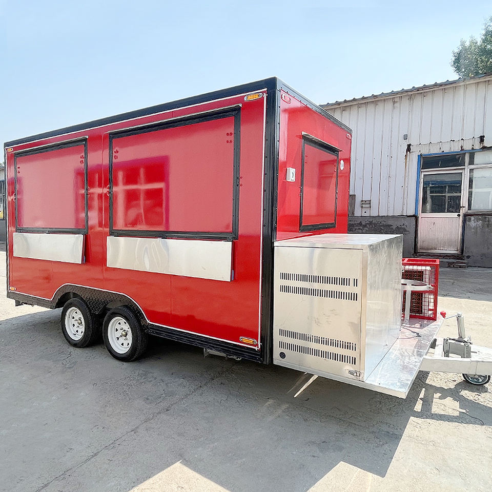 รถเทรลเลอร์ขายอาหารและบาร์บีคิวเคลื่อนที่บนถนนเชิงพาณิชย์รถขายอาหารในครัวอเนกประสงค์พร้อมห้องครัวเต็มรูปแบบ