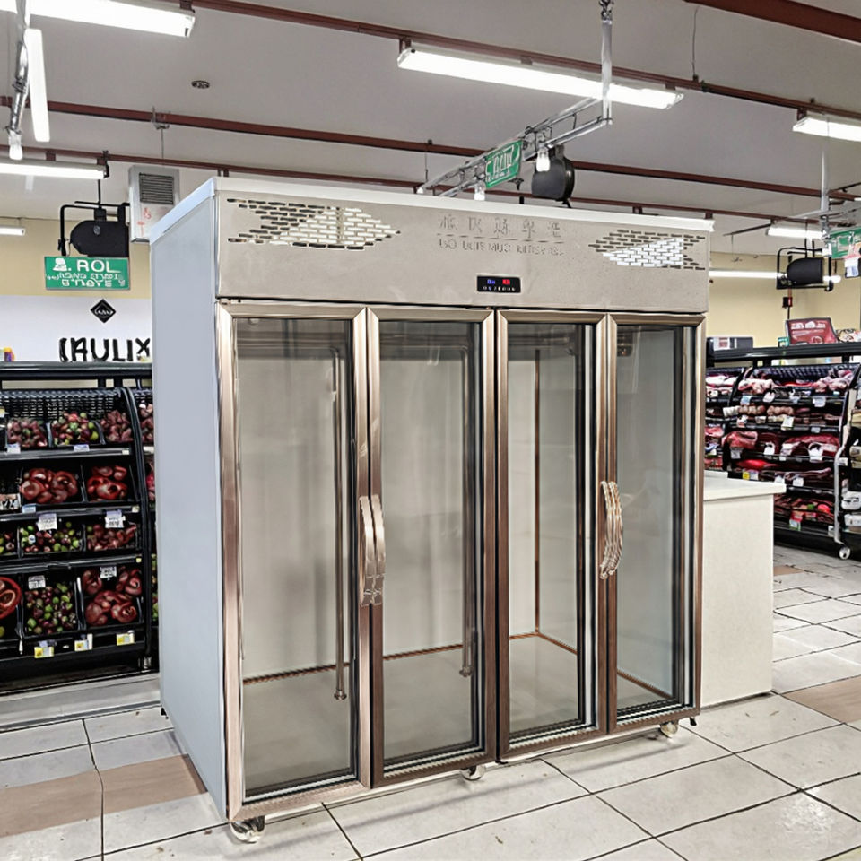 ตู้แช่เนื้อแบบแขวนสองหน้าสำหรับร้านค้าเชิงพาณิชย์ตู้แช่โชว์กระจกสไตล์คาร์ฟูร์สำหรับร้านขายเนื้อด้วยแท่งคงที่-25 ℃