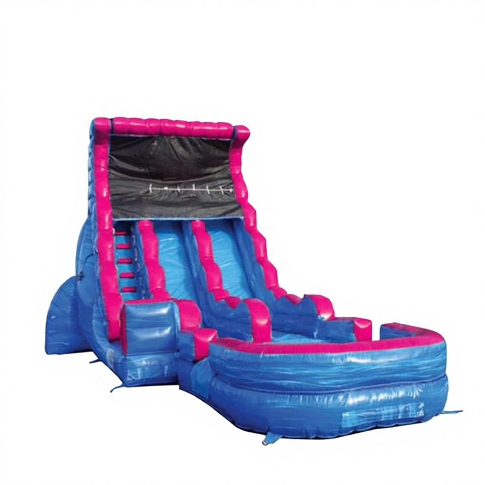 บ้านลมเด็กเล่นแบบคอมโบสำหรับเด็กอายุ 5-7 ปี วัสดุ PVC พร้อมสไลเดอร์น้ำ รูปทรงปราสาท สีสันปรับแต่งได้ สำหรับใช้ในสวนสนุก