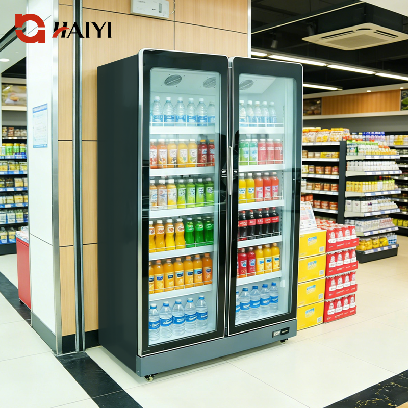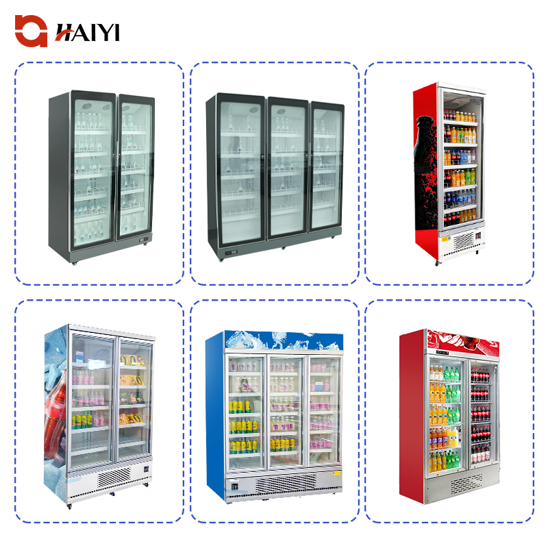 ตู้แช่เครื่องดื่มแบบตั้งตรงประตูกระจกสำหรับใช้ในเชิงพาณิชย์ พร้อมตู้แช่สแตนเลสสำหรับซูเปอร์มาร์เก็ต