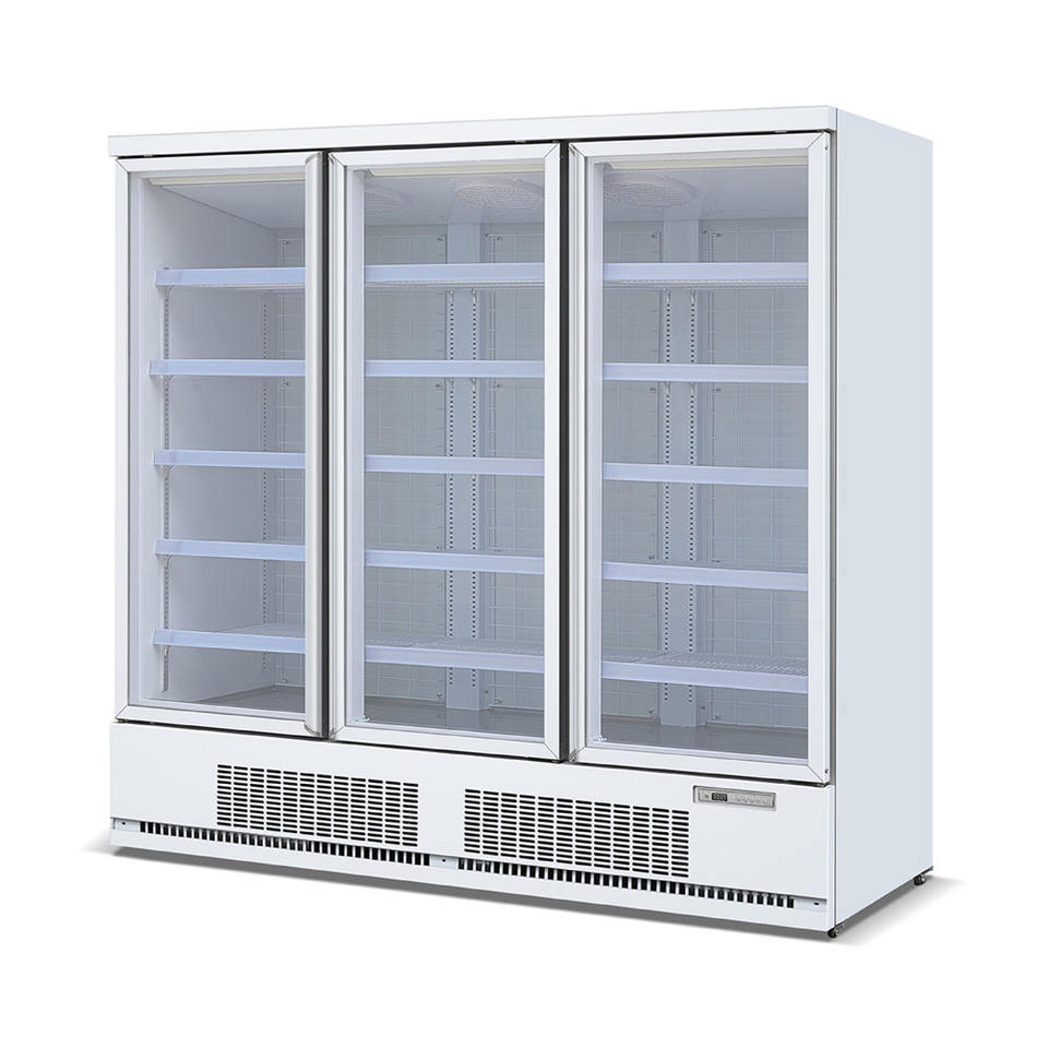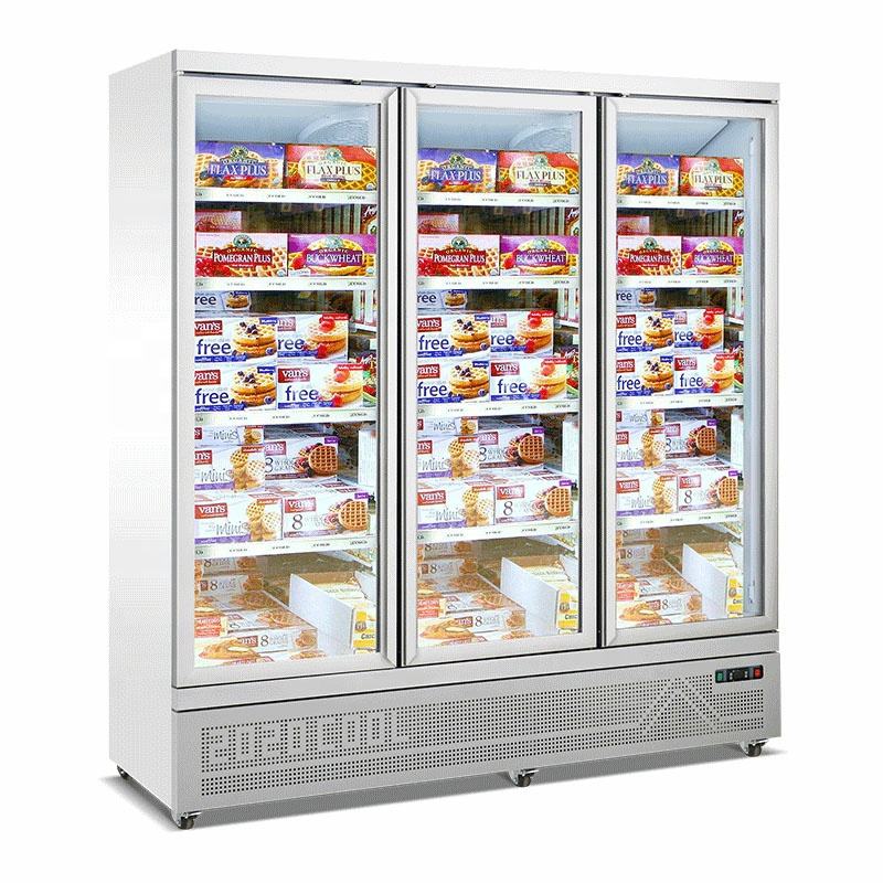 ตู้แช่ไอศกรีมแบบตั้งตรงเชิงพาณิชย์ -22 องศา ตู้แช่แข็งแบบพัดลมระบายความร้อน 3 ประตูกระจก แช่เนื้อสัตว์แช่แข็ง อุณหภูมิเดียว