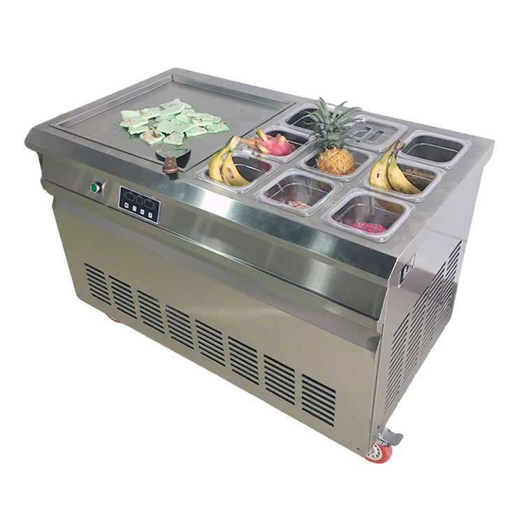 เครื่องทำไอศกรีมเชิงพาณิชย์แบบตั้งพื้น ผลิตภาพผลสูง สำหรับใช้ในธุรกิจในประเทศไทย เครื่องทำไอศกรีมม้วนแบบทอดสองถาด
