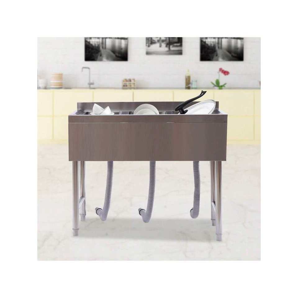 Commercial Utility Basin 3-Compartment Stainless Steel Sink with Faucet 10\" L X 14\" W X 10\" D Bowl for Restaurant and Bar
