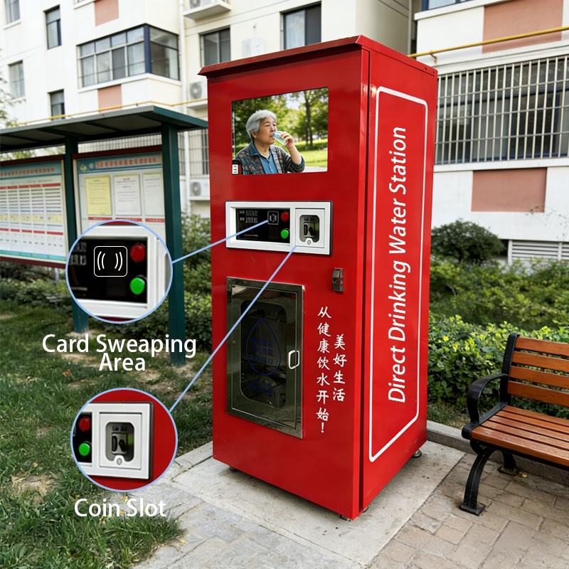 ตู้กดน้ำดื่มเชิงพาณิชย์ 400 แกลลอนต่อวัน ใช้เหรียญ/บัตร/รหัส ระบบกรองน้ำ RO สำหรับสวนสาธารณะ โรงเรียน โรงยิม เครื่องกรองน้ำระบบ Reverse Osmosis