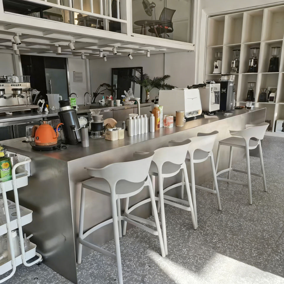 เคาน์เตอร์บาร์กาแฟไวน์เชิงพาณิชย์ สแตนเลส 304 พร้อมชั้นวางไวน์ ท็อปกระจก ไฟ LED สำหรับร้านอาหาร