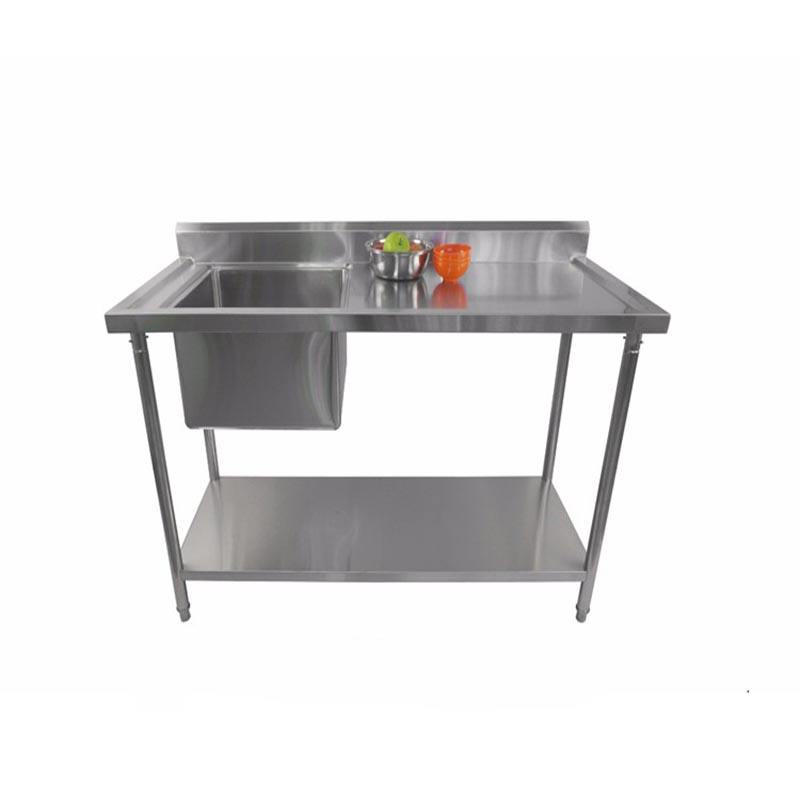 โต๊ะทำงานครัวเชิงพาณิชย์พร้อมอ่างล้างจานสแตนเลสสองชั้น ฐานอ่างเดี่ยวทำจากเหล็กชุบสังกะสี