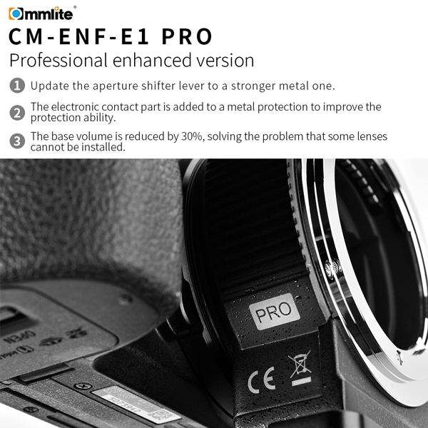 อะแดปเตอร์เมาท์เลนส์อิเล็กทรอนิกส์ Commlite CM-ENF-E1 PRO แบบออโต้โฟกัส พร้อมฟังก์ชันกันสั่น VR สำหรับเลนส์ Nikon F ไปยังกล้องเมาท์ E