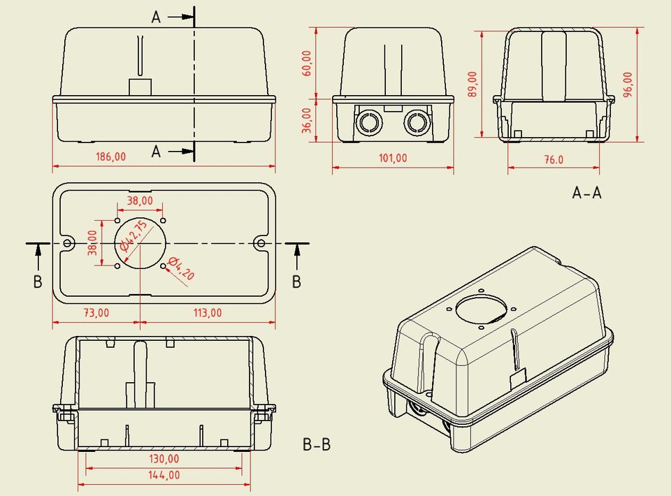 Comnet PS-14H9ตู้กระจายไฟฟ้าอัตโนมัติ ABS โปรไฟล์สูงสำหรับซ็อกเก็ต SCHUKO หนึ่งตัว IP42 186x101x96มม.
