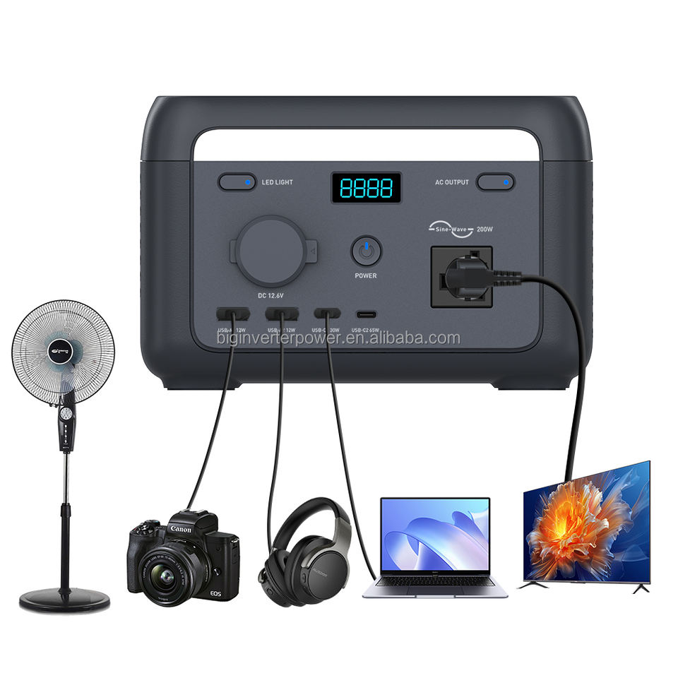 สถานีไฟฟ้าพกพา BIGINVERTER ขนาดกะทัดรัด 200W 102Wh สำหรับเต็นท์และการใช้งานอุปกรณ์ขนาดเล็ก